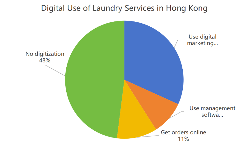 Ami a digitális átalakulást illeti, a mosodai szolgáltatások online megrendelésének fejlődése folyamatos Kínában. Plusz egy nagy logisztikai cég beavatkozása, kialakult az online rendelés plusz offline mosoda mód. Hongkongban azonban szűkös hely van, kicsi mosoda Hongkongban koncentrálódik, és sok emberi munkaerőre van szükség ahhoz, hogy ez a mód még mindig kezdeményezési szakaszban legyen.